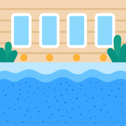 This warm, family-friendly pool is kept at a comfortable 86°F and features a shallow 3-foot entry with a gentle slope to 8 feet, ideal for both beginners and advanced swimmers.